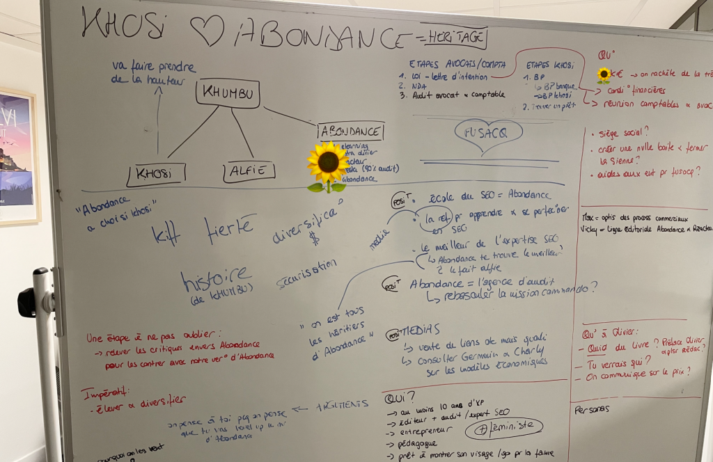 Et c’est un oui ! La phrase “On reprend Abondance !” arrive dans le bureau et va raisonner pendant plusieurs semaines, l’excitation est au maximum ! On célèbre la bonne nouvelle et on passe la soirée à brainstormer sur le projet : quelle est la vision ? Quelles sont les valeurs ? Quelles sont les prochaines étapes ?